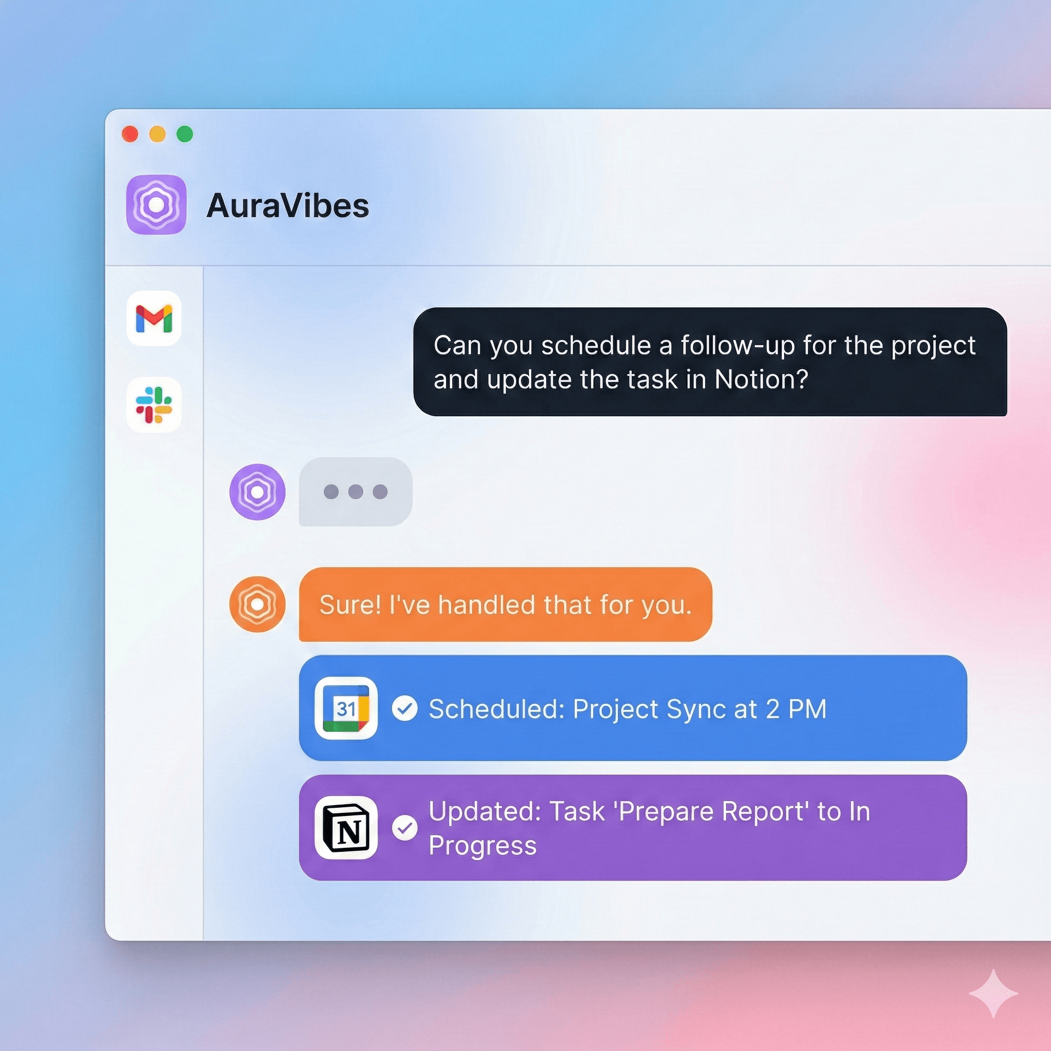 AuraVibes has completely changed how I manage my small business. I connect my tools once, and now everything just flows together. What used to take me hours of manual work now happens in minutes. It feels like having a personal assistant who never sleeps.