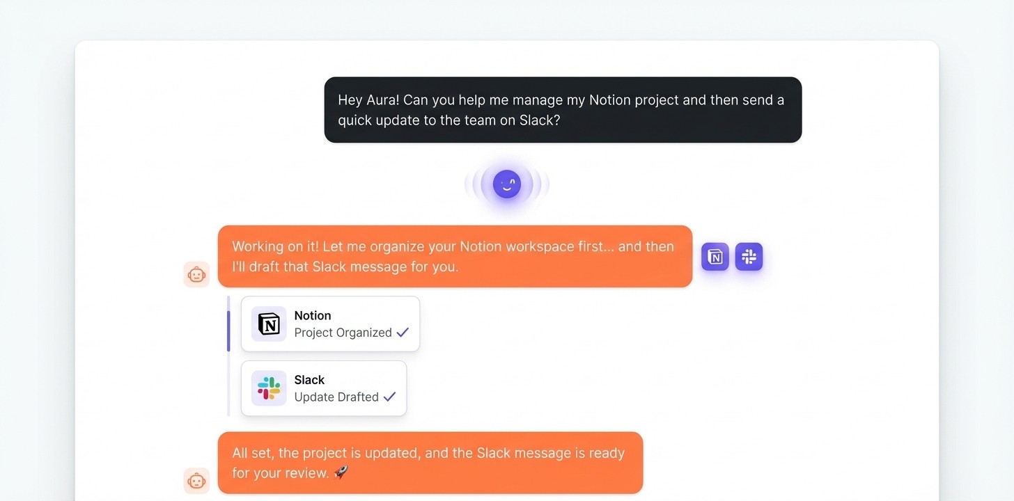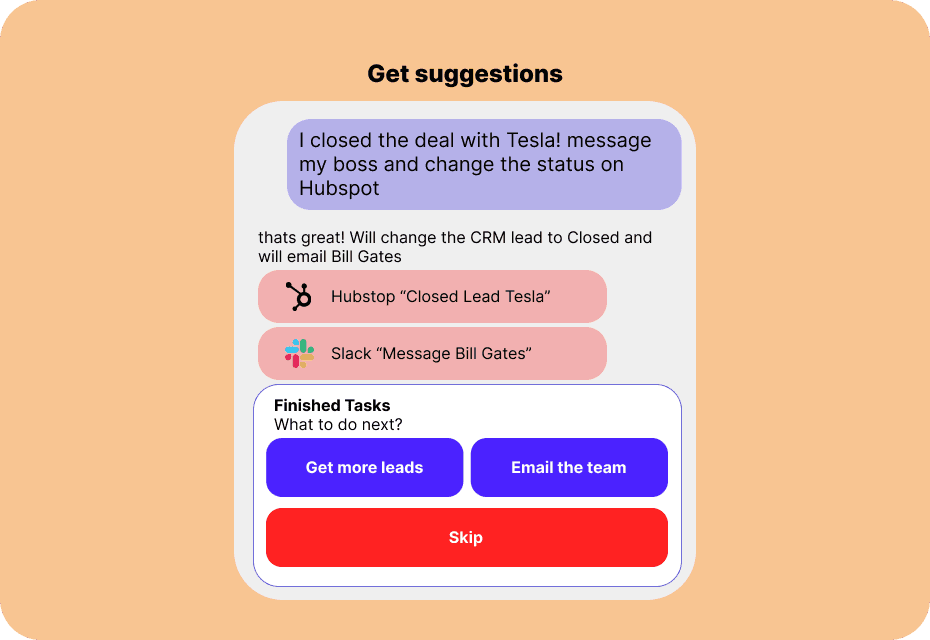Connect with Notion, Slack, Gmail, HubSpot and more. Your AI agent handles integrations so you can focus on what matters.